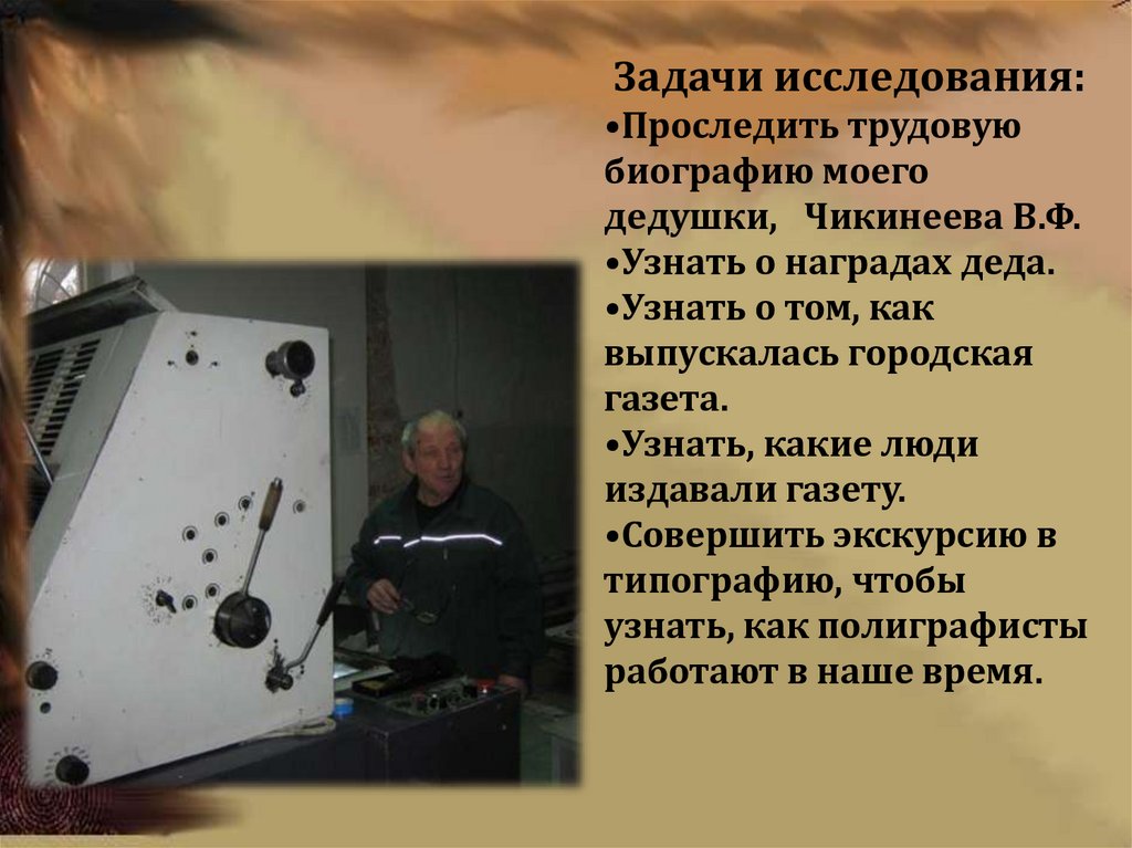 Задачи исследования:•Проследить трудовую