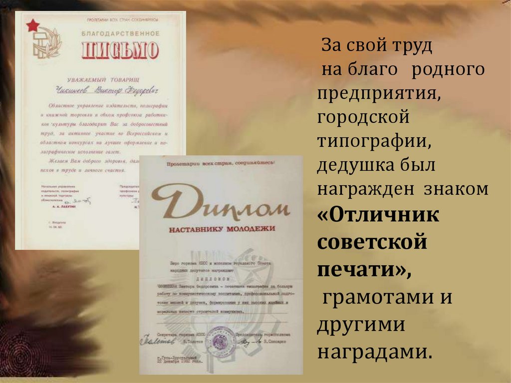 •Узнать о наградах деда.