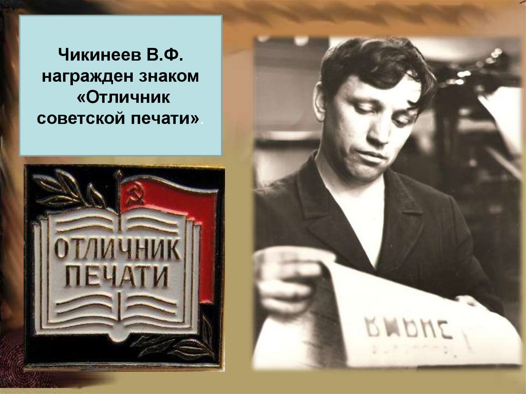 Чикинеев В.Ф.награжден знаком