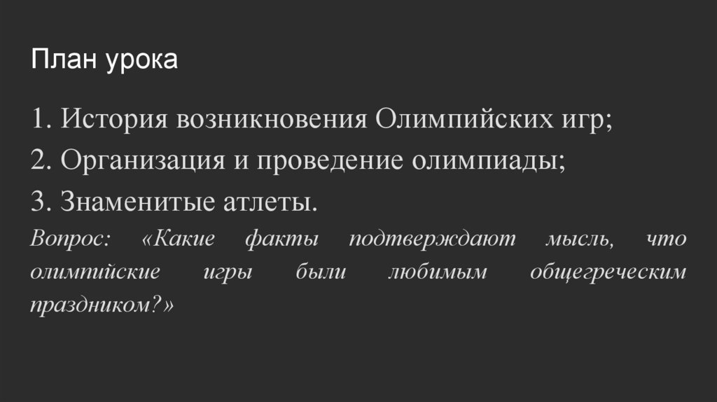 Олимпийские игры в древности. История возникновения Олимпийских игр;