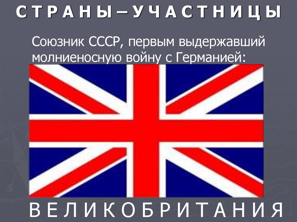 СТРАНЫ–УЧАСТНИЦЫСоюзник СССР, первым выдержавший