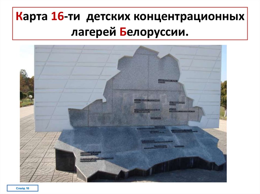 Карта 16-ти детских концентрационных лагерей Белоруссии.