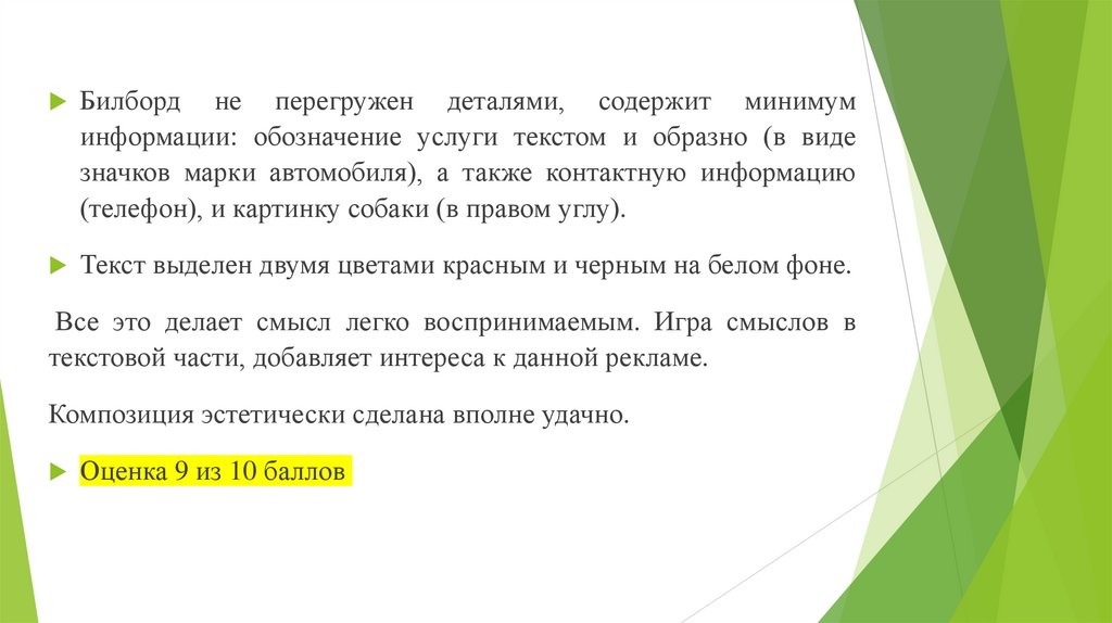 Билборд не перегружен деталями, содержит минимуминформации: обозначение услуги текстом и образно (в виде