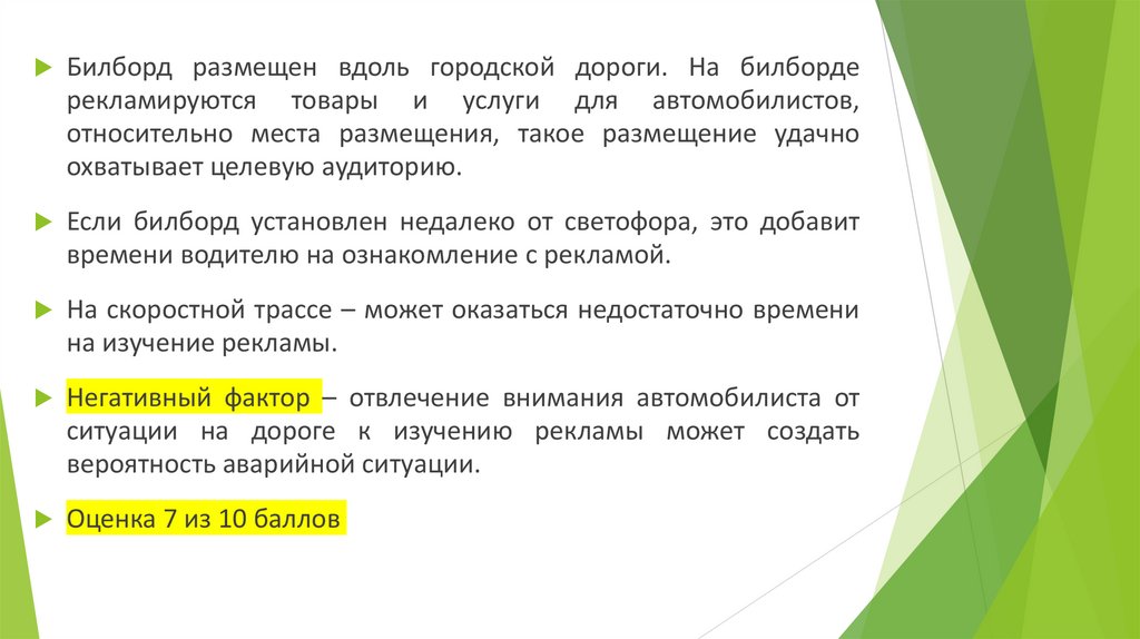 ситуации на дороге к изучению рекламы может создать