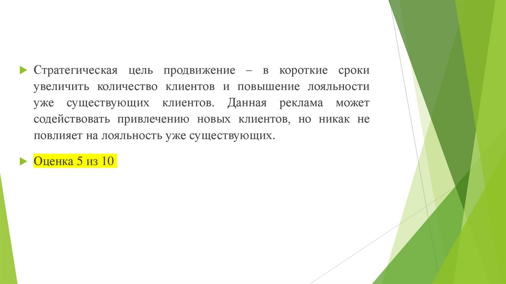 Стратегическая цель продвижение – в короткие срокиувеличить количество клиентов и повышение лояльности