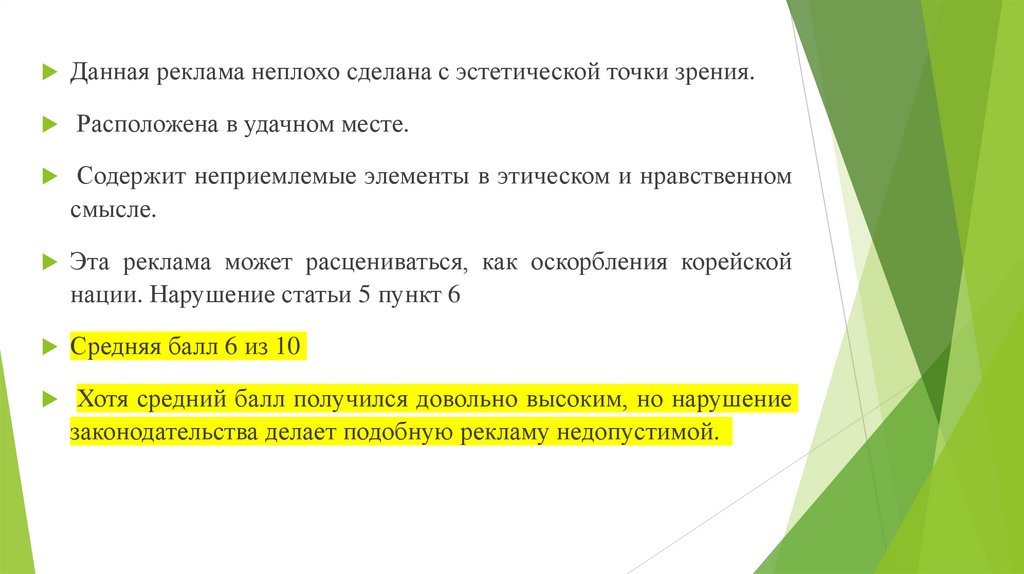 Также эта реклама может расцениваться, как оскорбления корейской