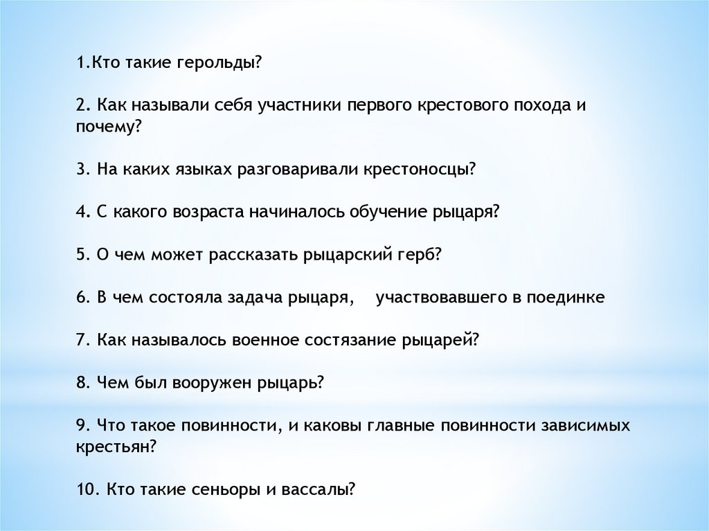 1.Кто такие герольды?2. Как называли себя участники первого крестового похода и