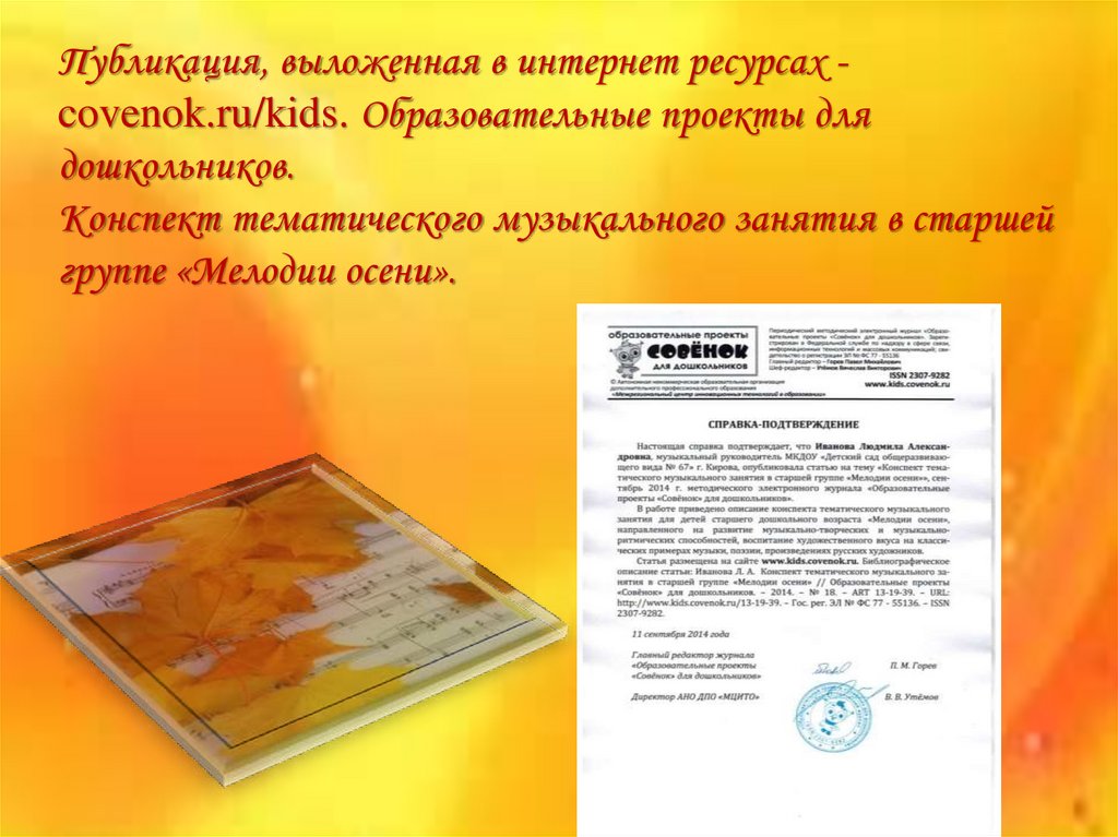 Публикация, выложенная в интернет ресурсах covenok.ru/kids. Образовательные проекты для дошкольников