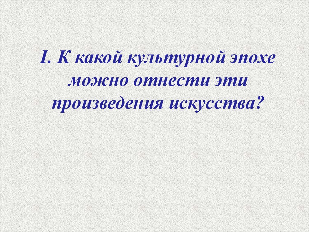 I. К какой культурной эпохеможно отнести эти