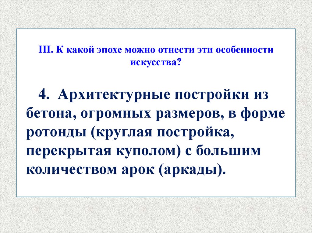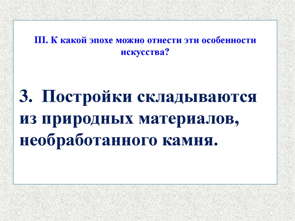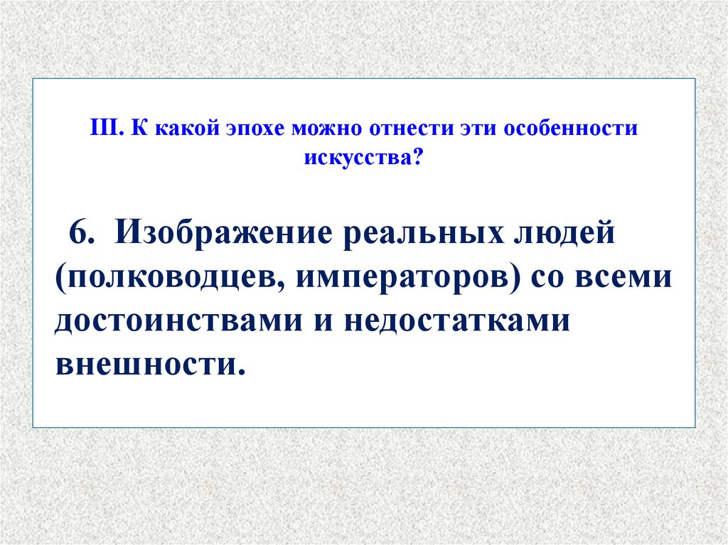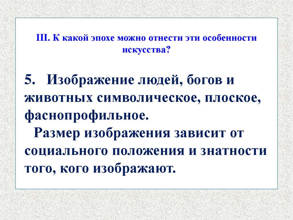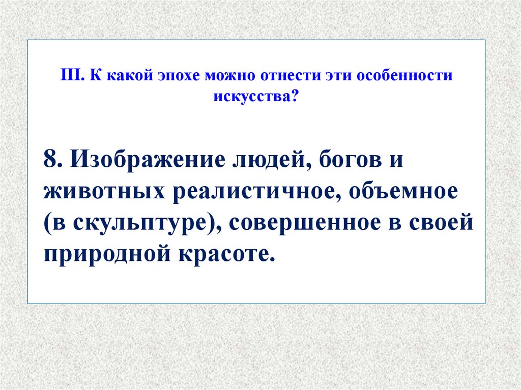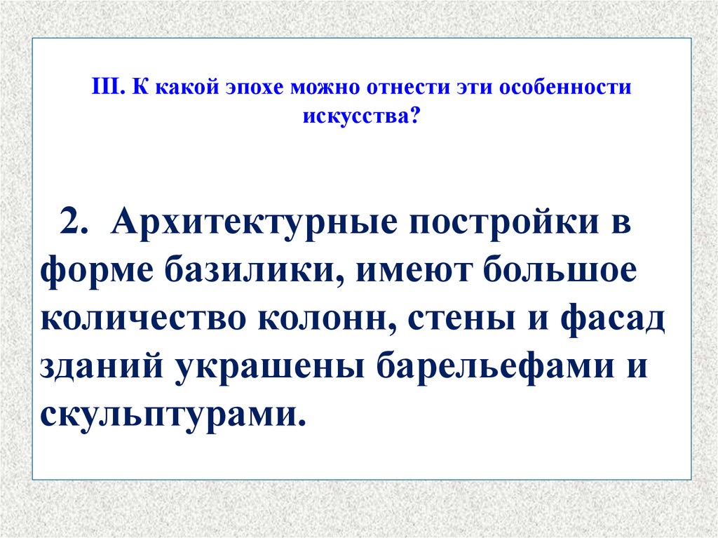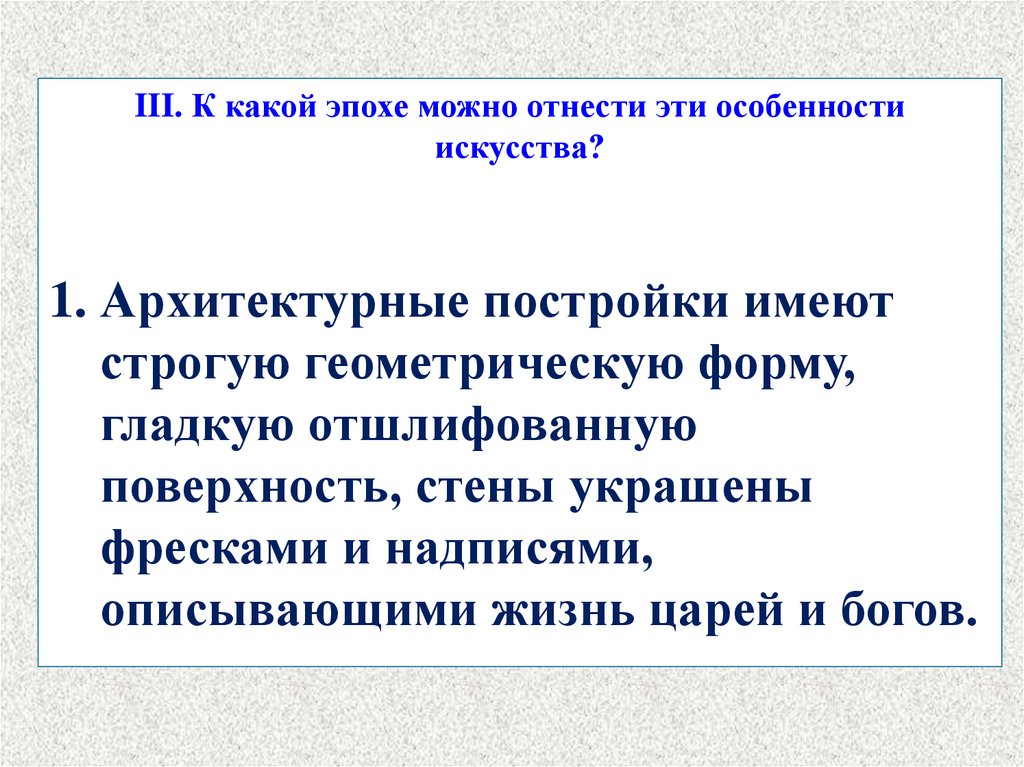 III. К какой эпохе можно отнести эти особенностиискусства?