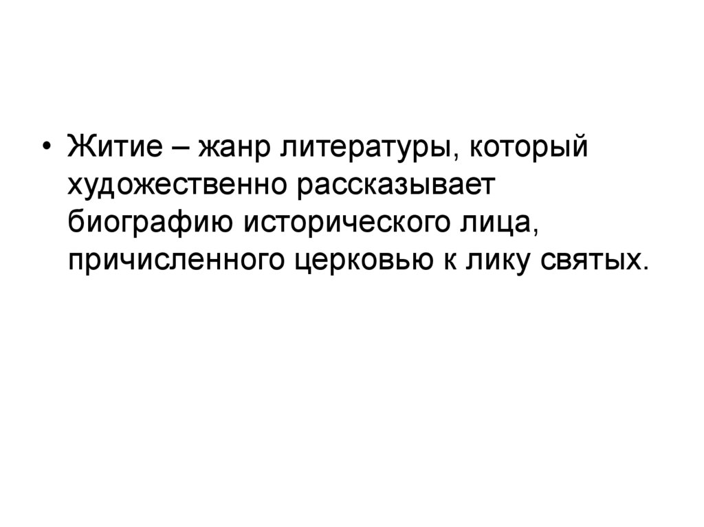 • Житие – жанр литературы, которыйхудожественно рассказывает