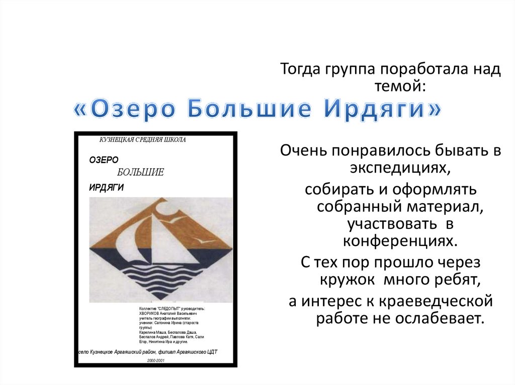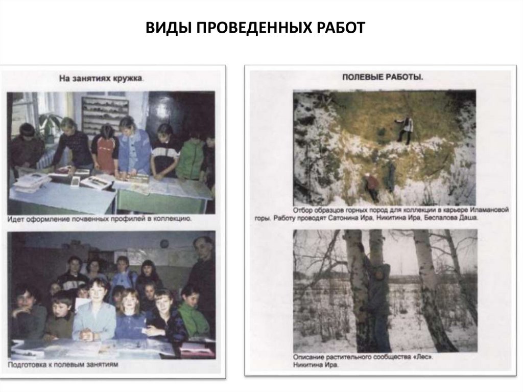 ВИДЫ ПРОВЕДЕННЫХ РАБОТ6. В 2002 году «Следопыт» расширил свою тематику на литературно-краеведческую, т.к. в её составе появился второй руководитель,