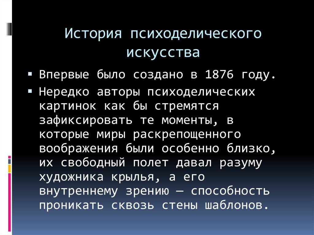 Впервые было создано в 1876 году.Нередко авторы психоделических
