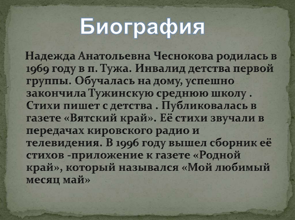 4. Первая отдельная книга стихов автора называется «Судьбы моей тонкая нить»