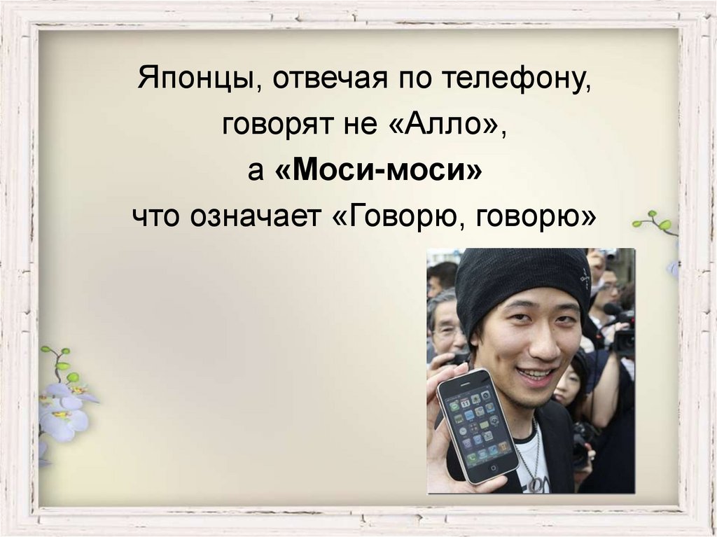 Японцы, отвечая по телефону,говорят не «Алло»,