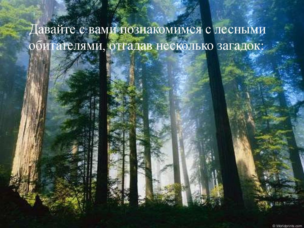 Давайте с вами познакомимся с леснымиобитателями, отгадав несколько загадок: