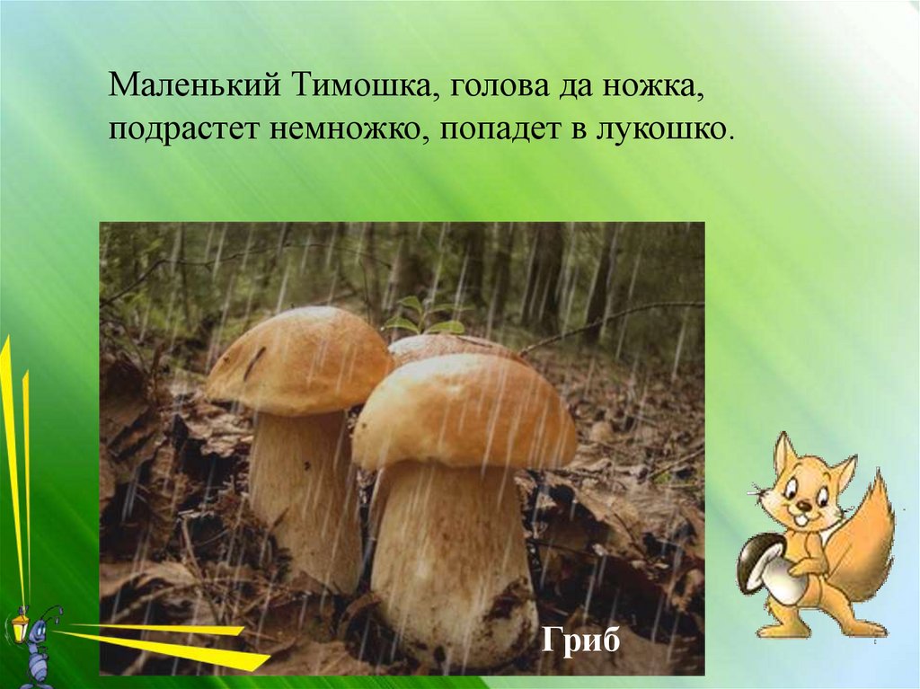 Маленький Тимошка, голова да ножка,подрастет немножко, попадет в лукошко.