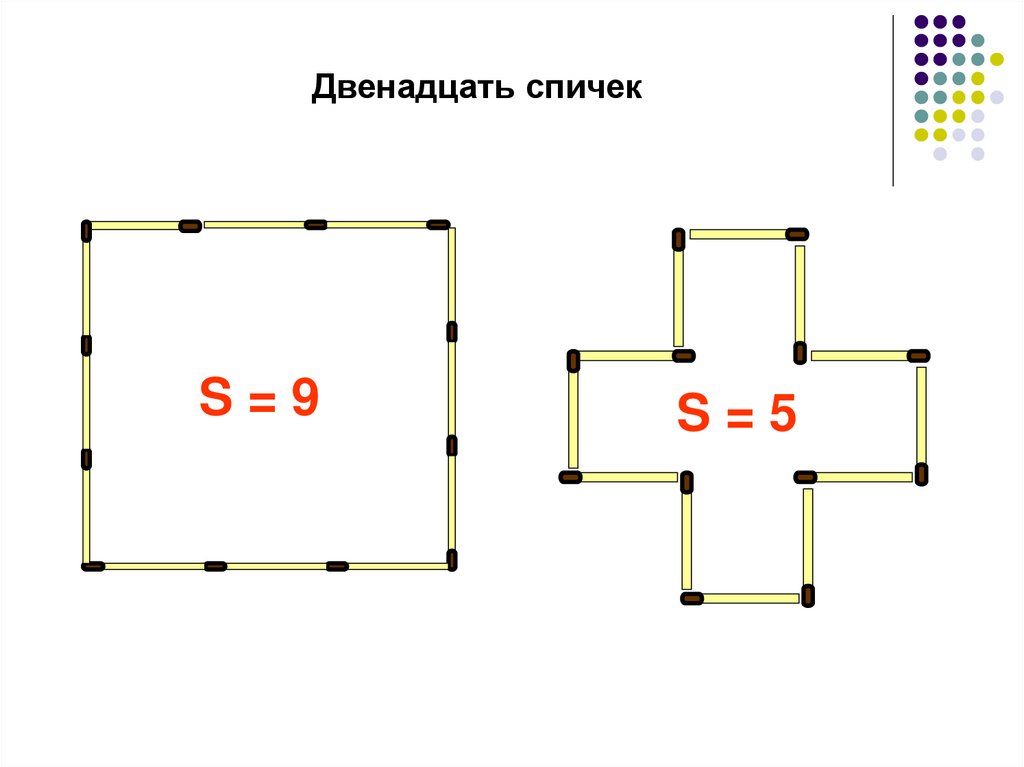 Если считать, что спичка служит эталономдлины, то 12 спичек можно различными
