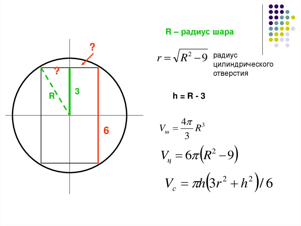 Через центр шара просверленоцилиндрическое отверстие длиной 6 см.