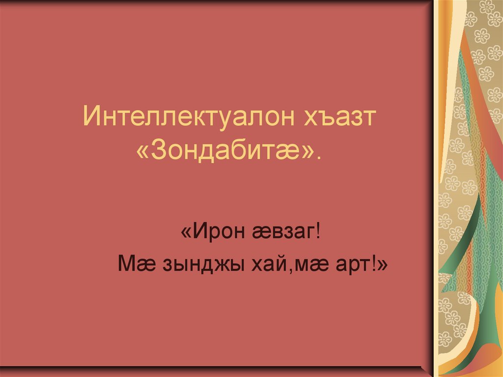 1. Интеллектуалон хъазт «Зондабитӕ».
