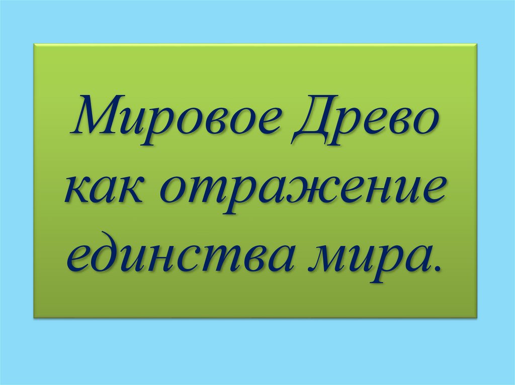 Мирово́е де́рево олицетворяет в себеединство всего мира. Это своеобразная