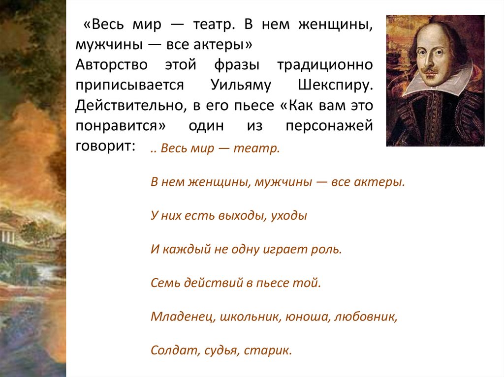 «Весь мир — театр. В нем женщины,мужчины — все актеры»