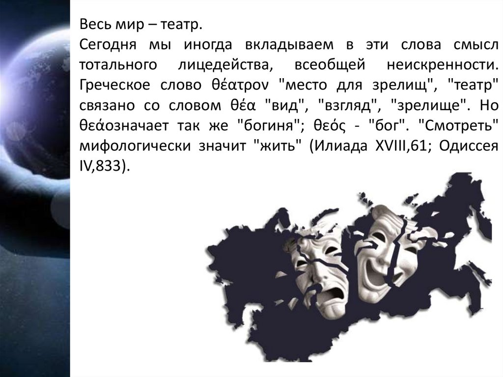 Весь мир – театр.Сегодня мы иногда вкладываем в эти слова смысл