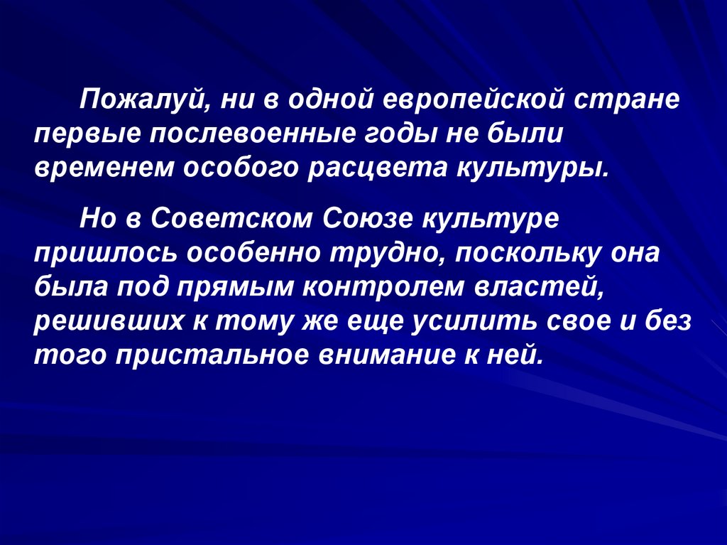 Пожалуй, ни в одной европейской странепервые послевоенные годы не были