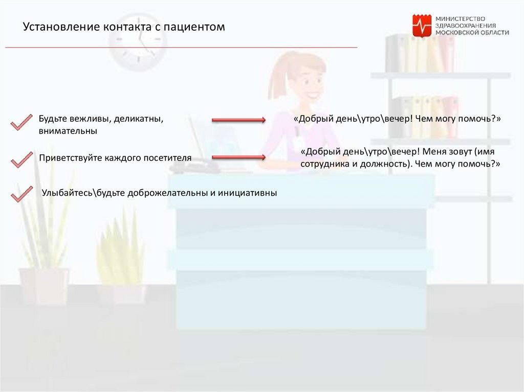 Установление контакта с пациентомБудьте вежливы, деликатны,