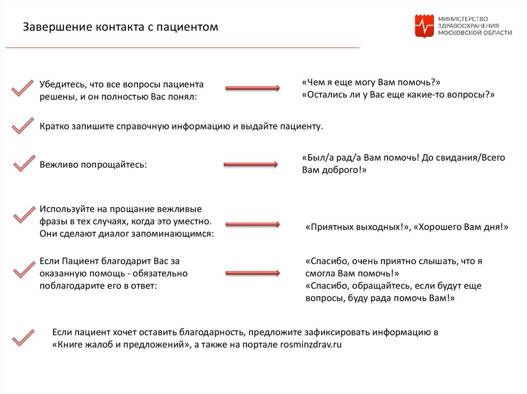 Завершение контакта с пациентомУбедитесь, что все вопросы пациента