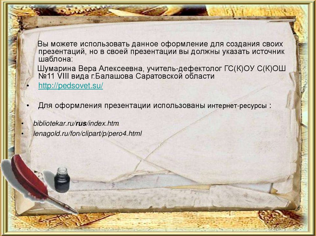 Для оформления презентации использованы интернет-ресурсы :
