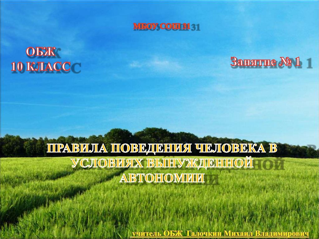 Правила поведения человека в условиях вынужденной автономии (10 класс)