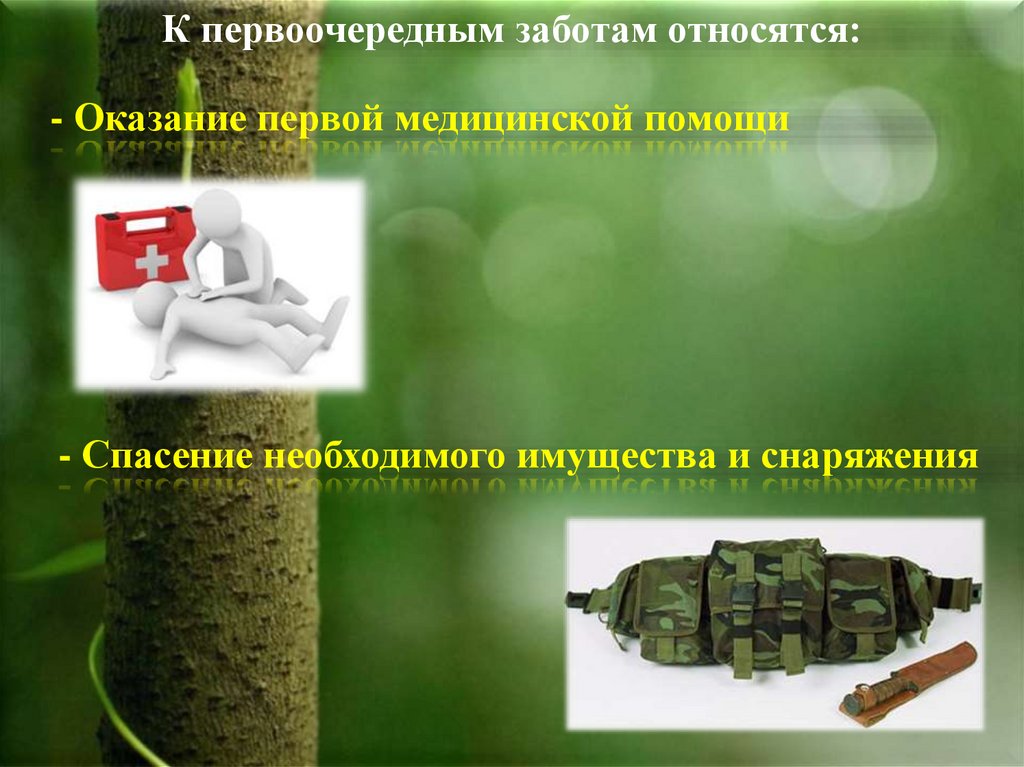 К первоочередным заботам относятся:- Оказание первой медицинской помощи
