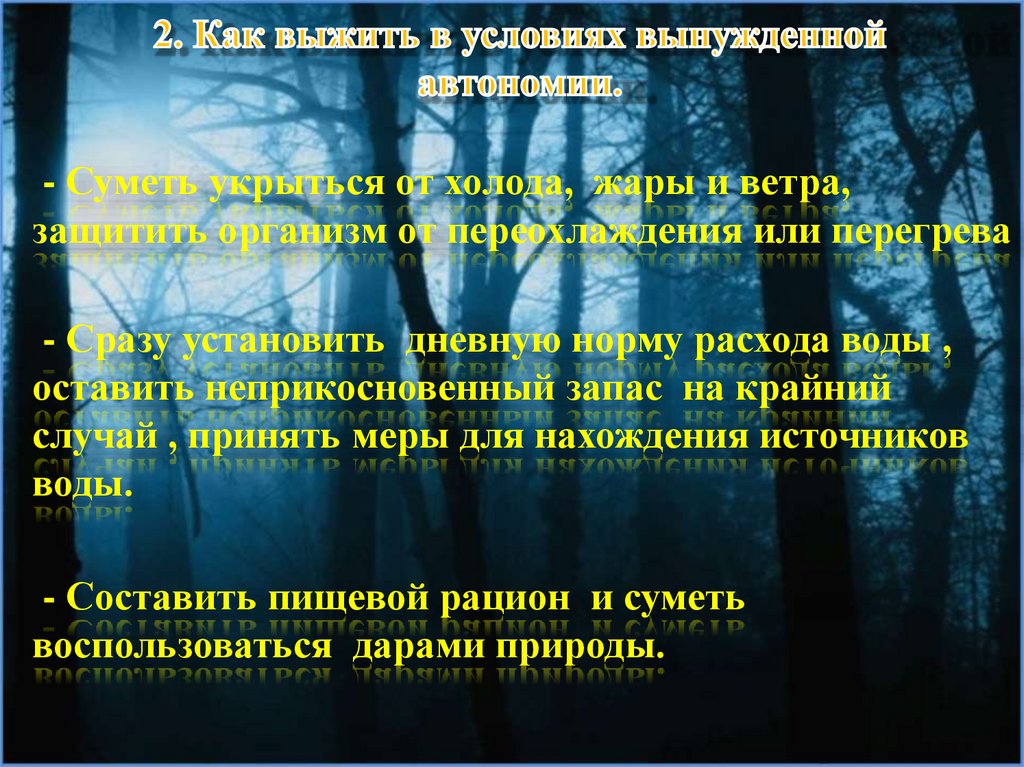 - Суметь укрыться от холода, жары и ветра,защитить организм от переохлаждения или перегрева