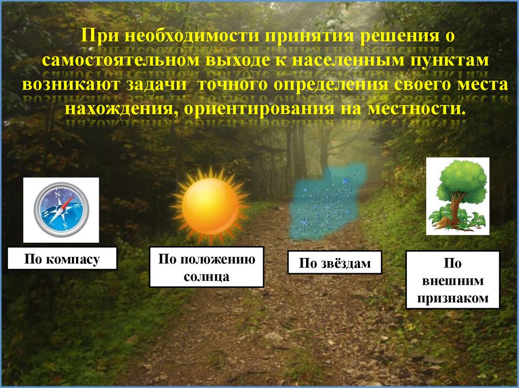 При необходимости принятия решения осамостоятельном выходе к населенным пунктам
