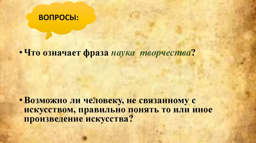 ВОПРОСЫ:• Что означает фраза наука творчества?