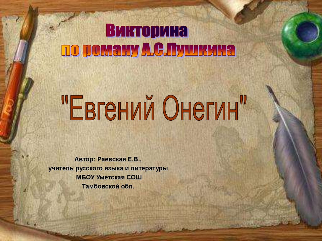 Роман А.С.Пушкина «Евгений Онегин» (викторина)