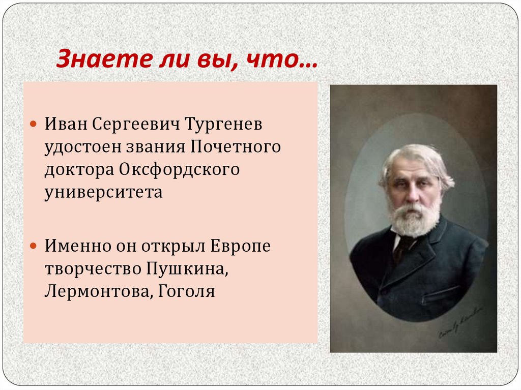 Иван Сергеевич Тургеневудостоен звания Почетного