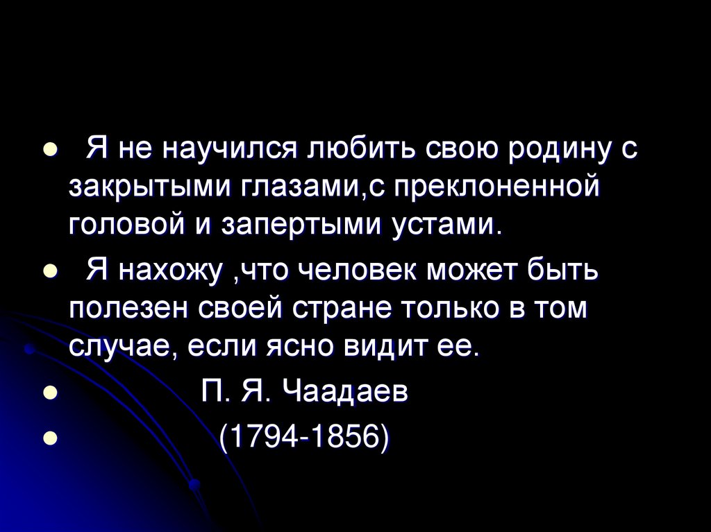 Я не научился любить свою родину сзакрытыми глазами,с преклоненной