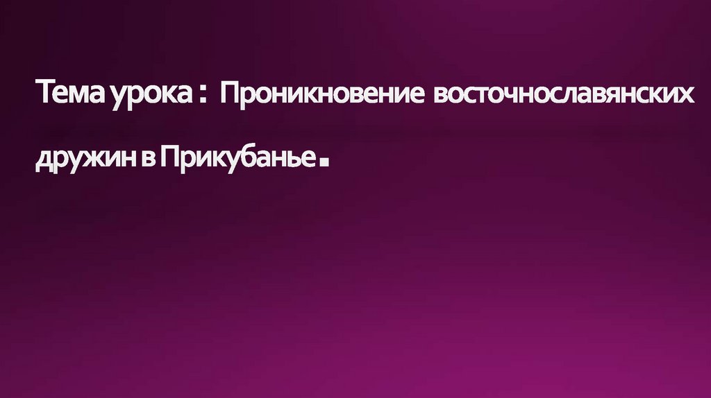 Тема урока : Проникновение восточнославянских восточнославянских дружин в Прикубанье.