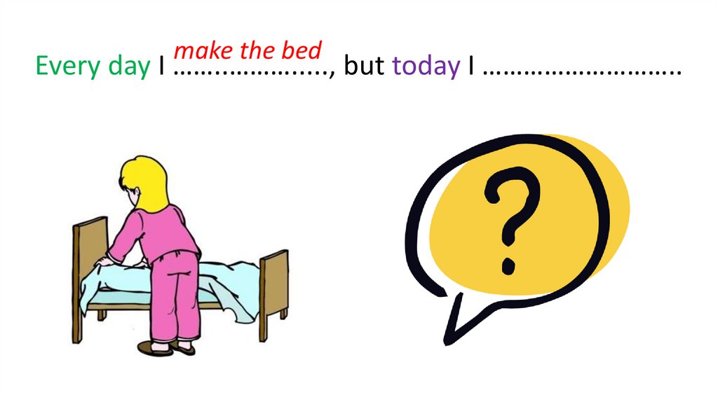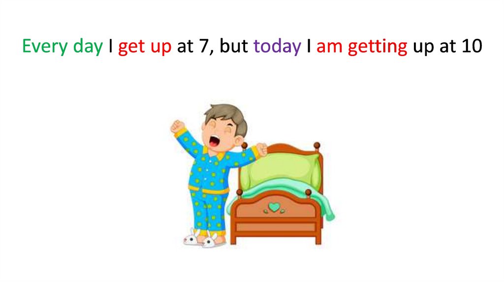 1. Present Simple – Present Continuous. Every day I … but today I … daily routine, распорядок дня