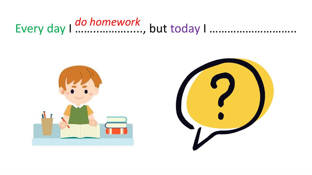 do homeworkEvery day I ……..………....., but today I ………………………..
