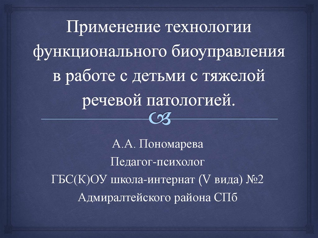 1. Применение технологии функционального биоуправления в работе с детьми с тяжелой речевой патологией.