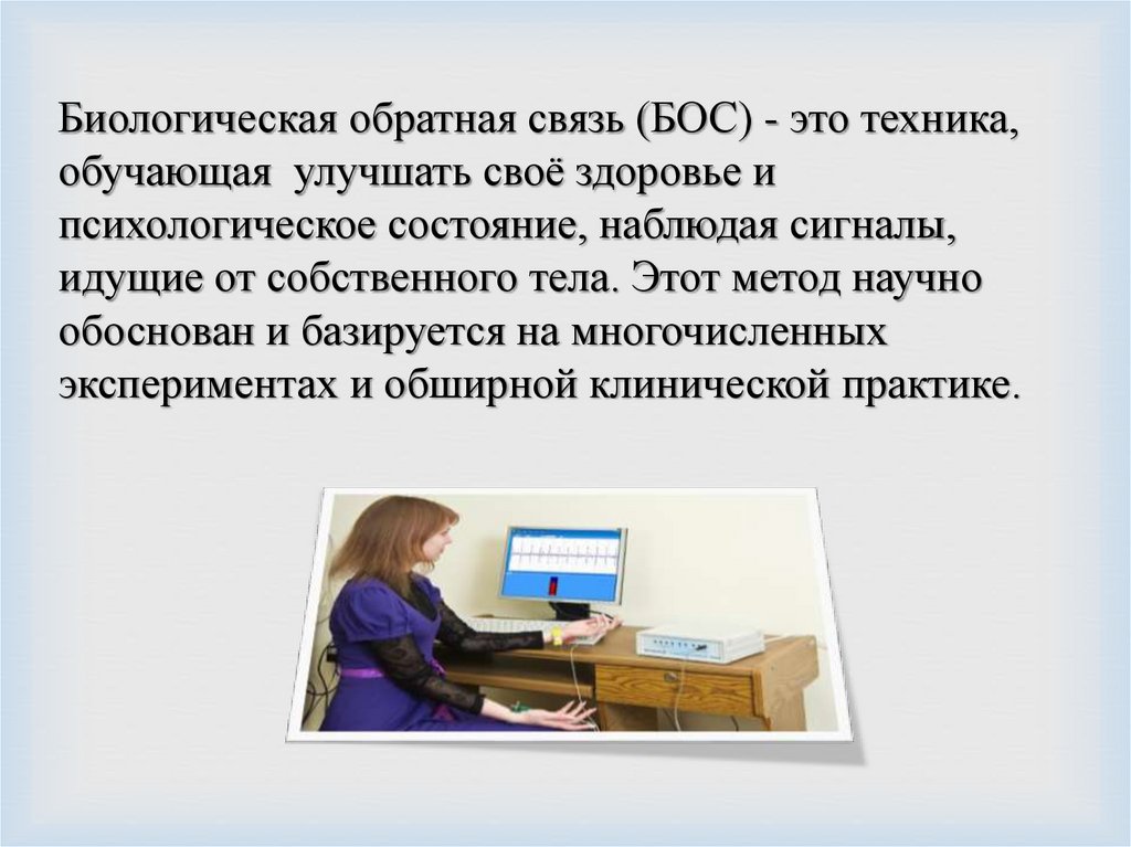 Биологическая обратная связь (БОС) - это техника,обучающая улучшать своё здоровье и
