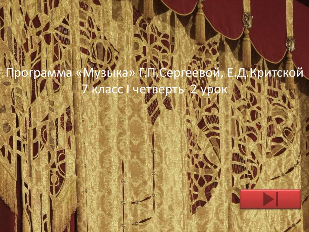 Программа «Музыка» Г.П.Сергеевой, Е.Д.Критской7 класс I четверть 2 урок