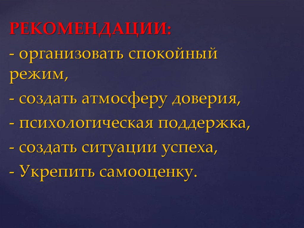 РЕКОМЕНДАЦИИ:- организовать спокойный