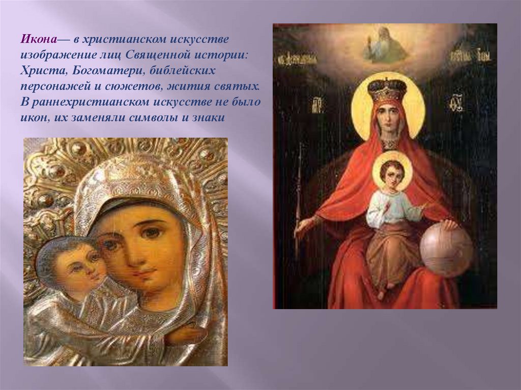Икона— в христианском искусствеизображение лиц Священной истории: