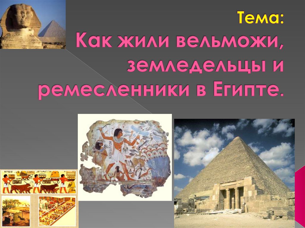 1. Тема: Как жили вельможи, земледельцы и ремесленники в Египте.