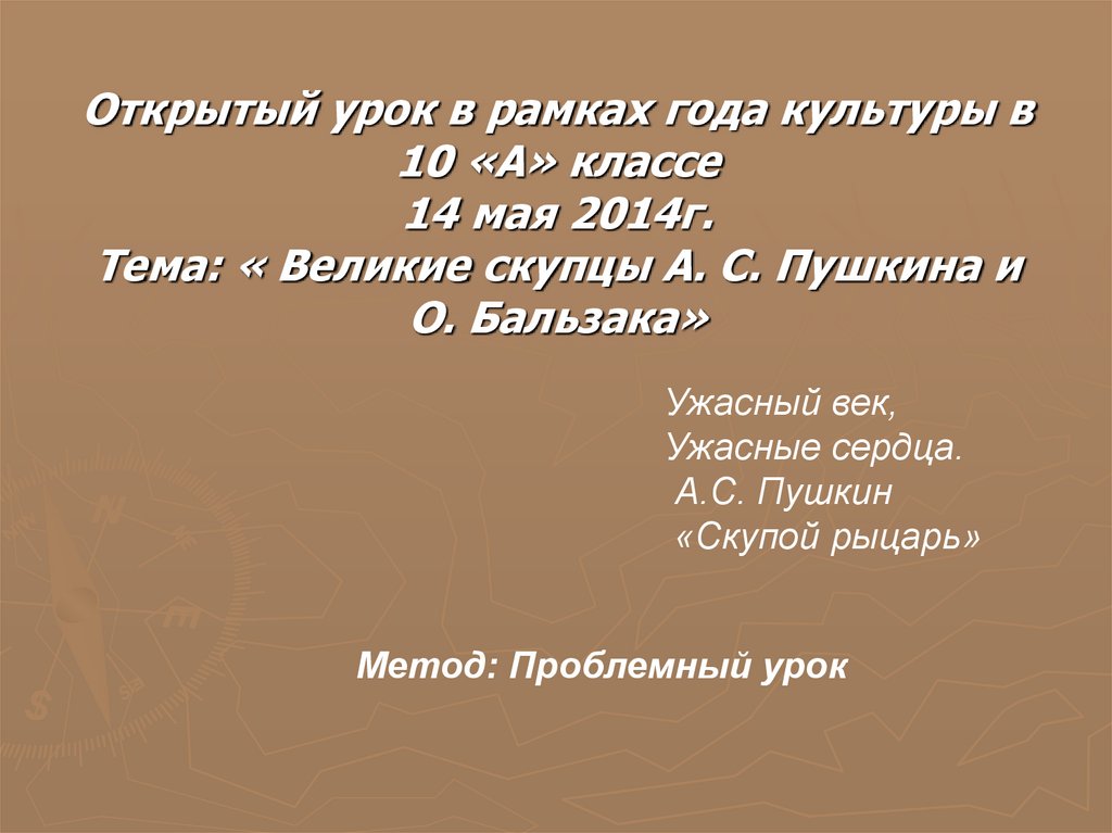 Тема: « Великие скупцы А. С. Пушкина и
