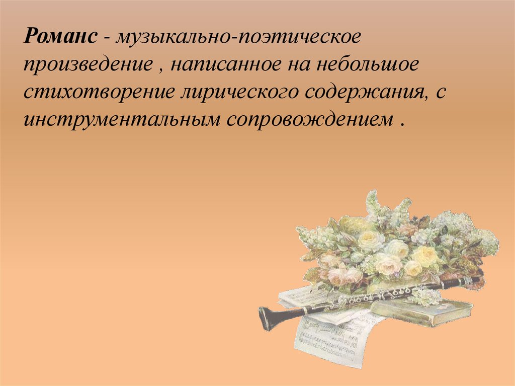 Романс - музыкально-поэтическоепроизведение , написанное на небольшое